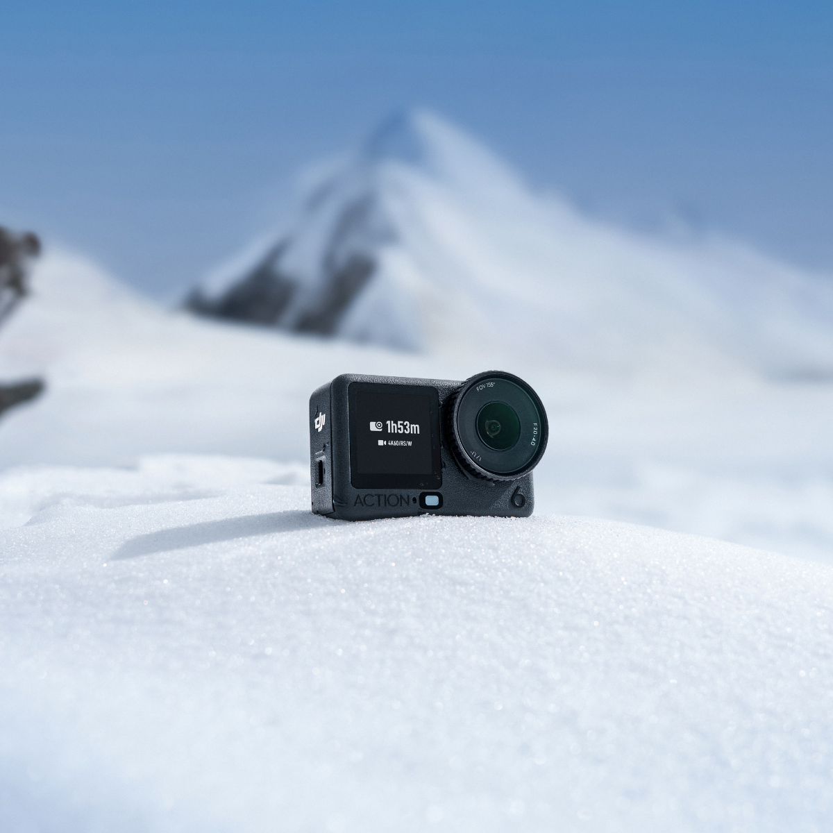 Tested at a room temperature of 25°C, recording 1080p/24fps (16:9) video with RockSteady+ enabled, Wi-Fi off, voice control off, gesture control off, and screen off. Data comes from DJI labs and is for reference only. When activating and using Osmo Action 6 in the EU and UK, the runtime may differ from the data shown here due to local regulations on device operating temperatures. Please refer to your actual usage experience.