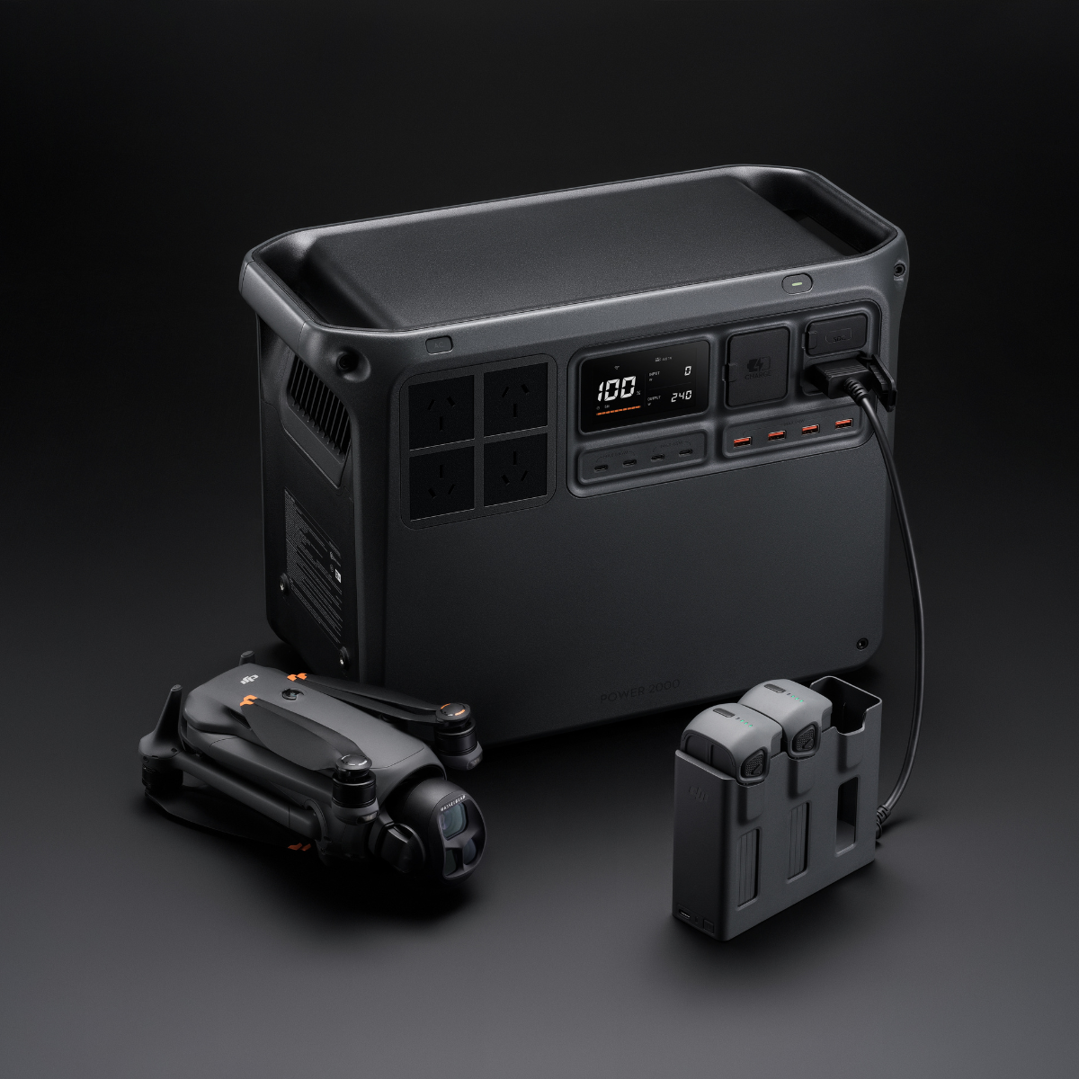 1.DJI Power 2000 can connect up to ten expansion batteries, which provide up to 22528 Wh when fully charged.