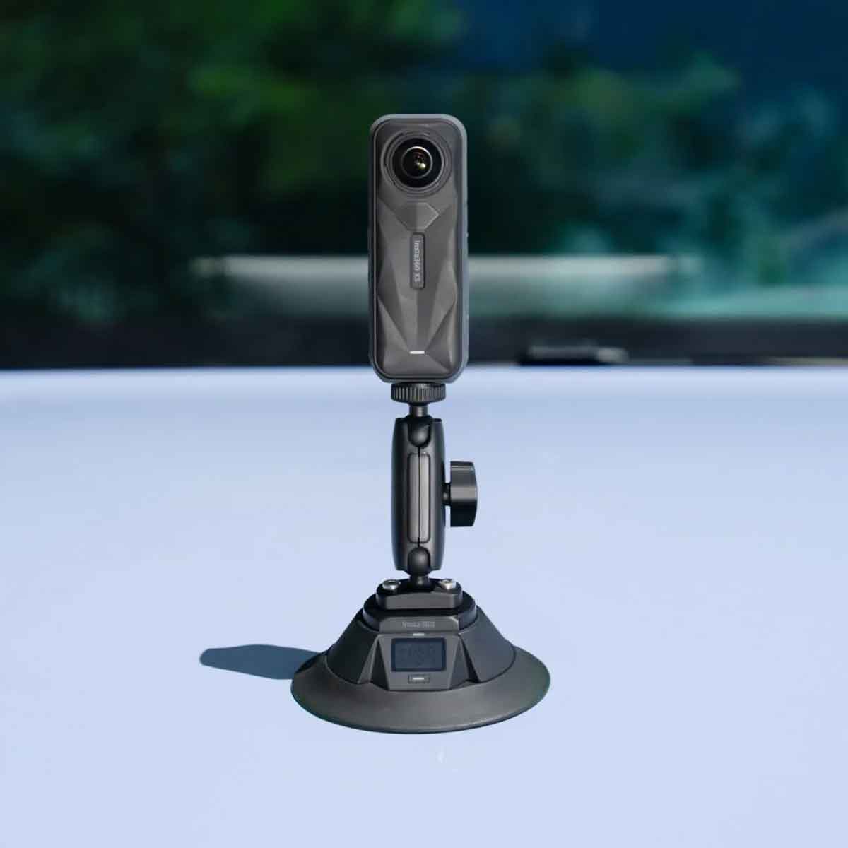 • Strong suction mount for epic car shots. One touch locks it instantly, and the automatic sensor maintains strong and steady suction.